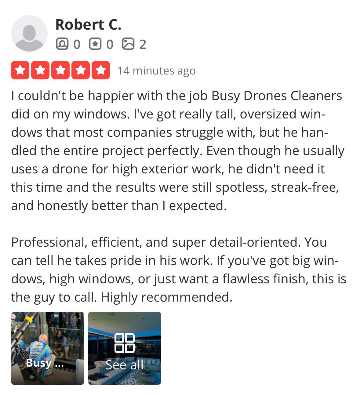 Our efficient drones can take on any exterior surface cleaning job. The bigger the job the bigger the savings to our clients. Our drone is 5x faster than traditional methods. Who has the time to waste? Book now!