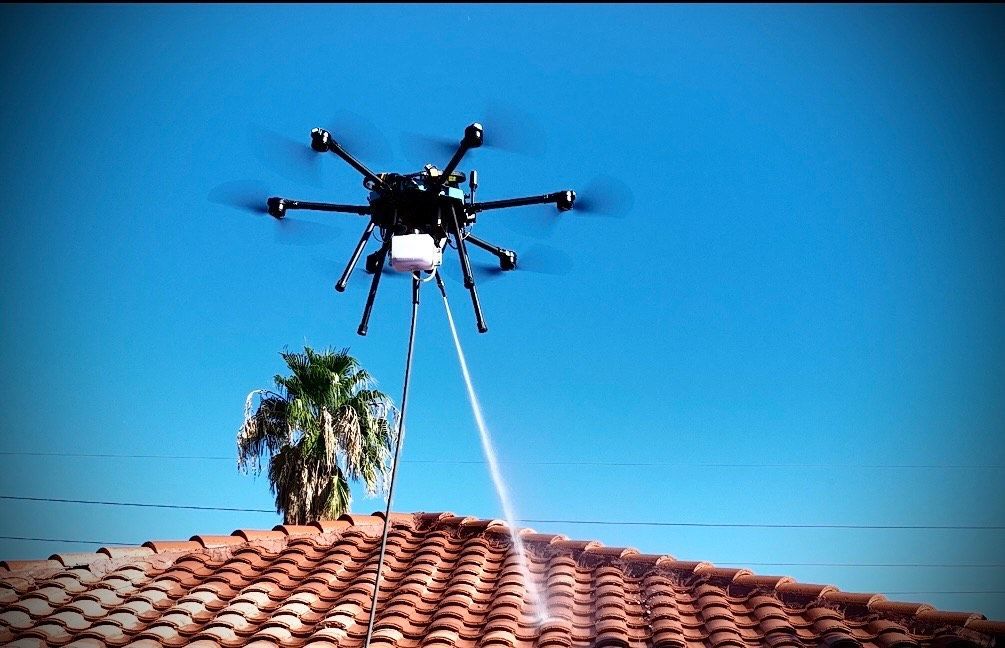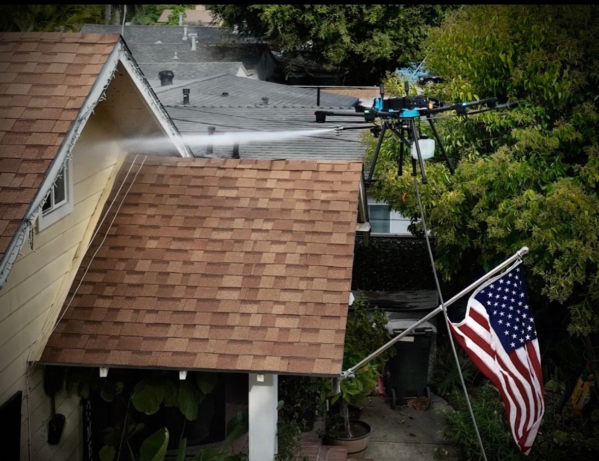Our drones use pure DI water at on solar panels. No brushes or chemicals are ever used on solar panels. Drones are still able to switch on demand to a chemical mix for roof cleaning and tougher jobs to fit our client's needs in just a buzz!