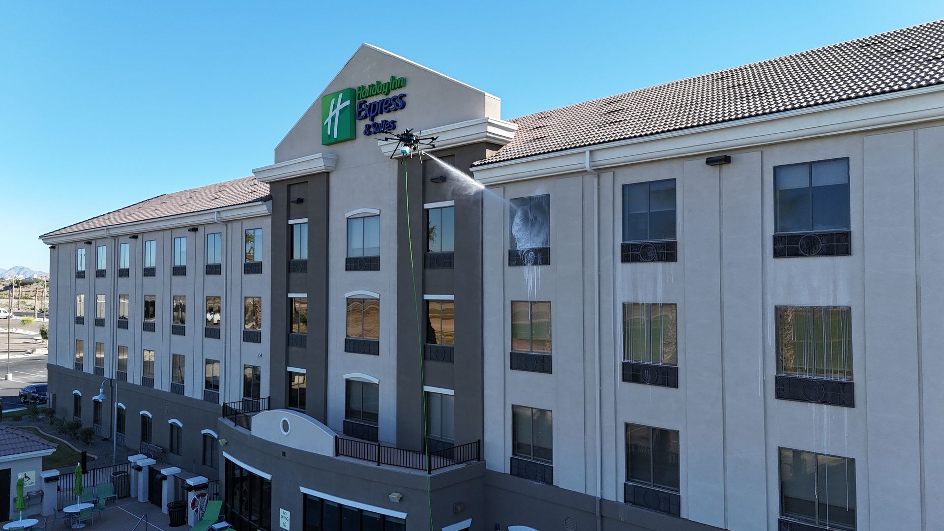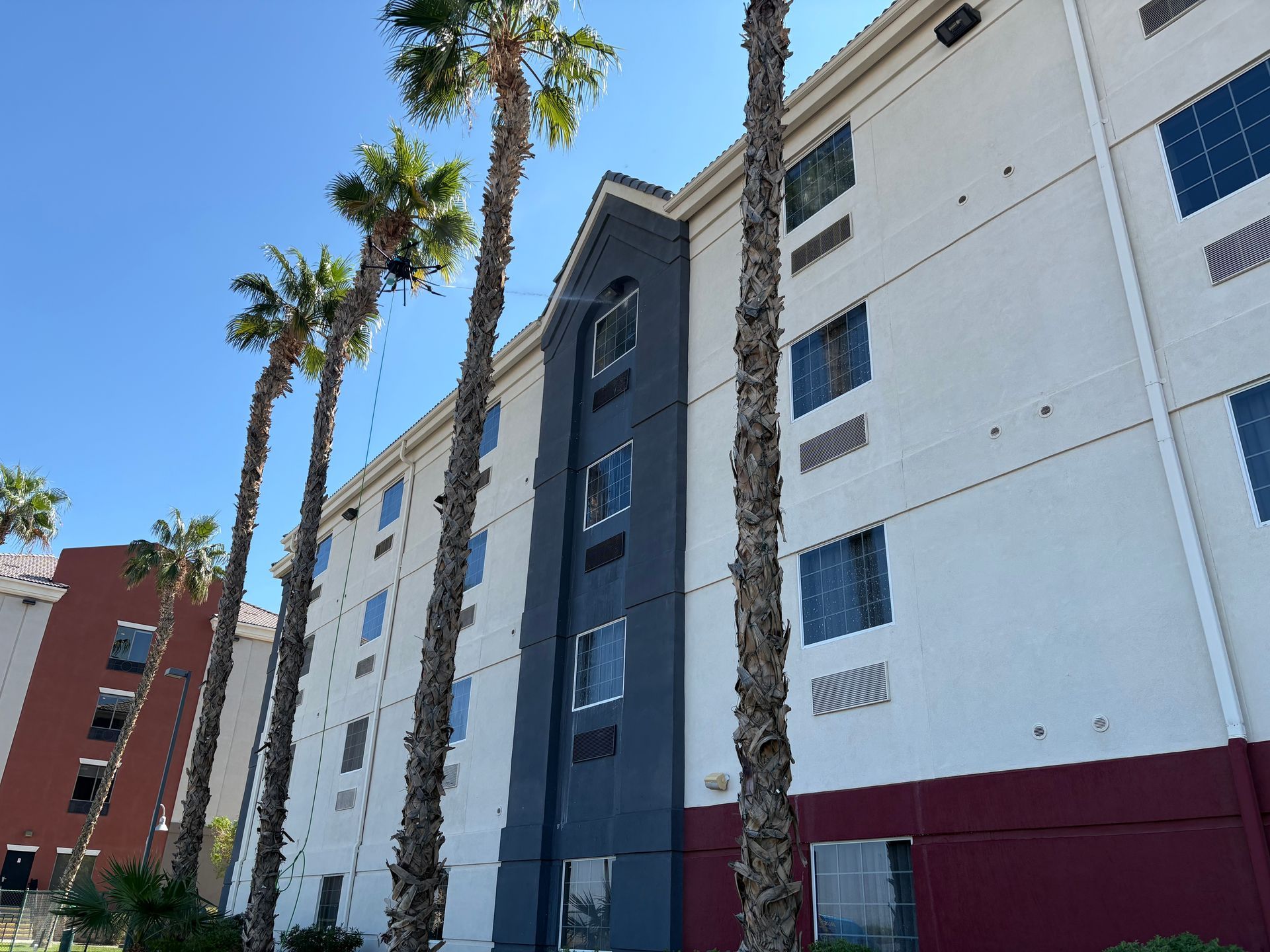 These projects highlight our advanced drone-powered cleaning solutions for commercial and residential properties of all sizes. From multi-story hotels and office buildings to residential rooftops, our technology enables us to safely access hard-to-reach areas without the need forlifts, scaffolding, or surface contact. The result is a faster, more efficient cleaning process that minimizes disruption while delivering consistent, high-quality results and restoring curb appeal.
