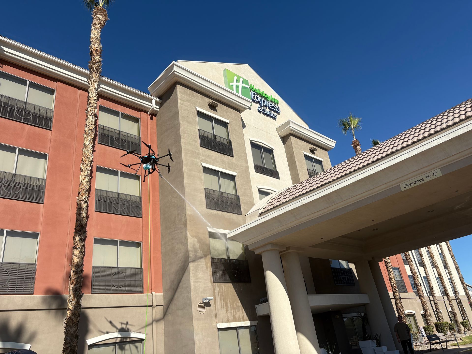 - Accessibility There are no exterior windows we can't fly to. Drones are able to reach any area to power wash and clean. Just remember if a bee can reach it, then so can we!